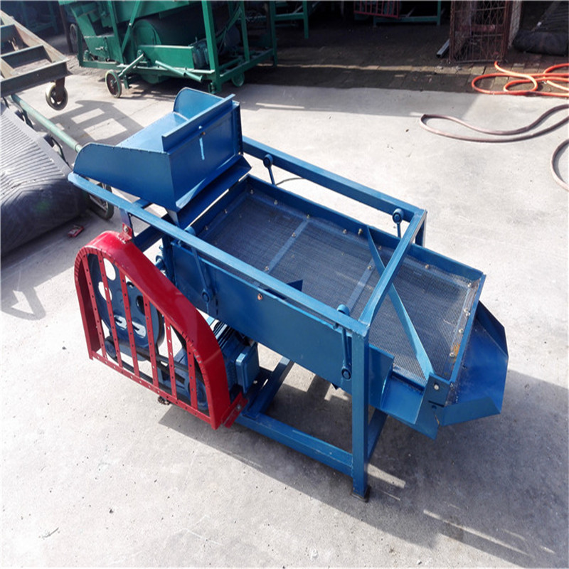 該精選篩為二層篩網(wǎng),先經(jīng)過進料口處風機抽風,直接抽走重量輕的雜葉或麥秸稈,上層篩的初次篩分再把大雜清理過,好的糧食(種子)直接落到下層篩網(wǎng)上,下層篩網(wǎng)會把糧食(種子)中的小雜.小石子.有缺陷的糧食(種子)直接漏掉,完好的糧食(種子)會從出料口篩分出來。該小型清糧機解決了揚場機的功能單一,不能有效去除石子.土塊的缺陷,更能為清理.凈選糧食(種子)帶來滿意的效果。該機有占地小,移動方便,便以維修,除塵除雜效率明顯,能耗低,使用簡便等優(yōu)點。