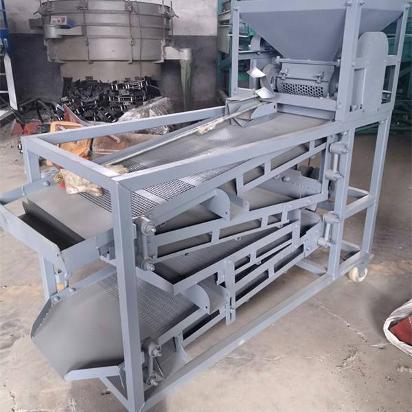 將花椒放入進(jìn)料口---------進(jìn)料口下方有一個(gè)分離器將花椒耙籽殼分離開--------分離的混合物料落入回旋篩--------回旋篩分為3層-------一層出料霉花椒、花椒葉、花椒枝-----一層復(fù)式篩網(wǎng)篩的是花椒枝----------二層為花椒枝出料口-------復(fù)式篩網(wǎng)為花椒籽出料口--------花椒籽出來時(shí)有風(fēng)機(jī)可以增加花椒籽的凈度。提高花椒凈度---------底層出來的是花椒殼
